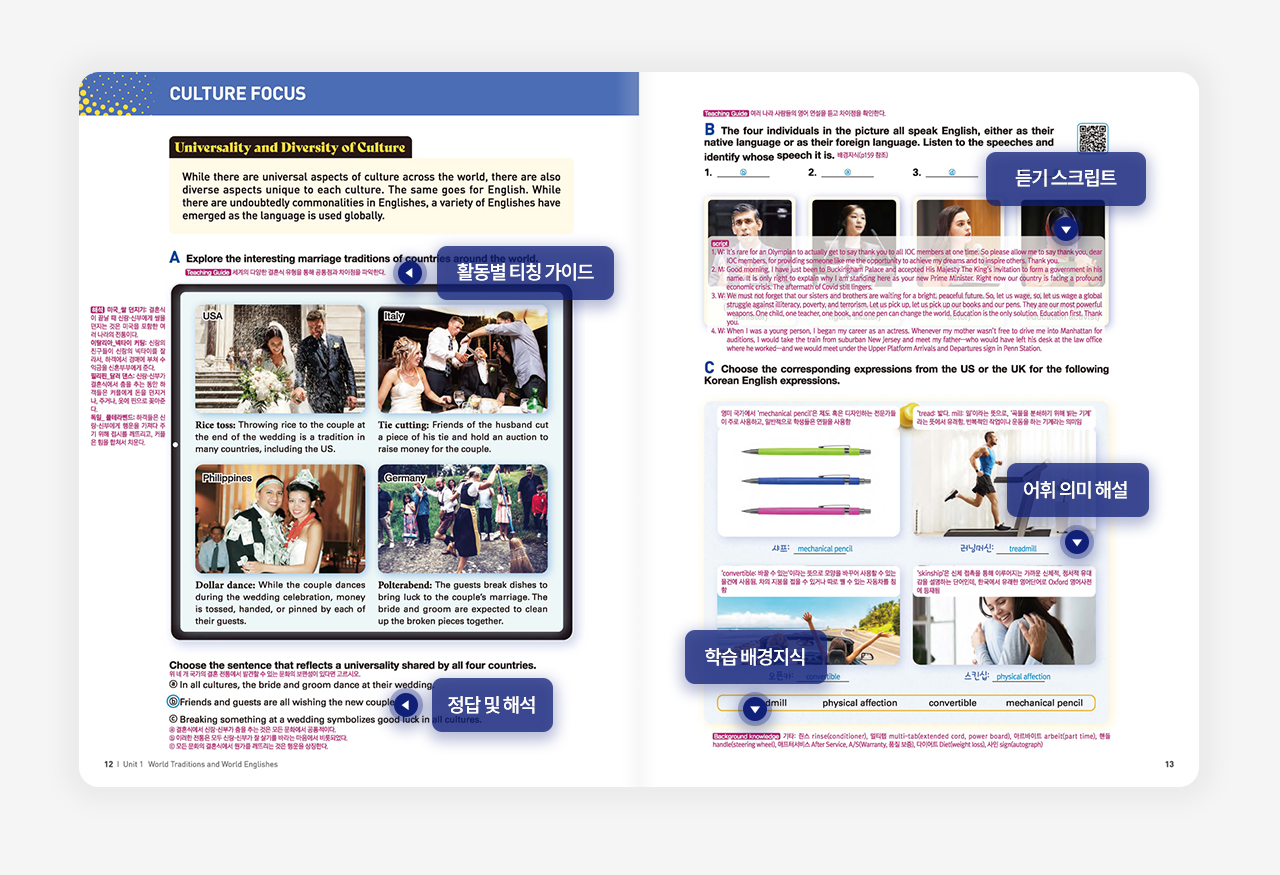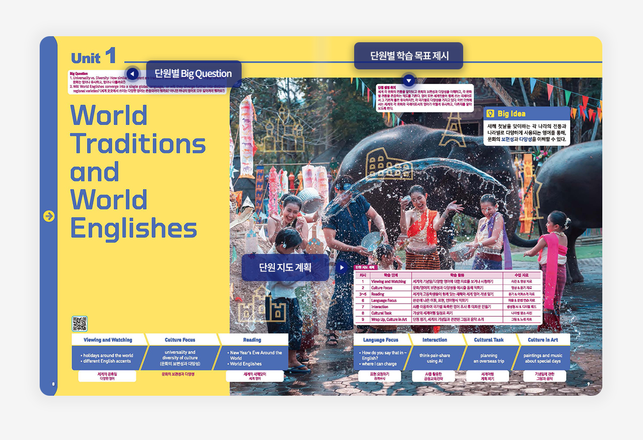 교과서 참고서 교과서 구매 지사안내 로그인 회원가입 지원센터 이젠교육 회사소개 CEO인사말 연혁 오시는 길 교육과정 2015 교과서 중등 한문 고등 한문Ⅰ 관광 영어 2022 교과서 미디어 영어 세계 문화와 영어 실생활 영어 회화 영미 문학 읽기 심화 영어 심화 영어 독해와 작문 영어 발표와 토론 직무 영어 관광 영어 2022 자습서 미디어 영어 세계 문화와 영어 실생활 영어 회화 영미 문학 읽기 심화 영어 심화 영어 독해와 작문 영어 발표와 토론 직무 영어 학습자료실 지원센터 알립니다 공지/이벤트 교과서 구매하기 지사안내 고객센터 홈페이지 FAQ 교과서 내용 FAQ 1:1문의/요청 2015 중등 한문 2015 고등 한문Ⅰ 2015 관광 영어 미디어 영어 세계 문화와 영어 실생활 영어 회화 영미 문학 읽기 심화 영어 심화 영어 독해와 작문 영어 발표와 토론 직무 영어 2022 관광 영어 자료나눔방 2022 교과서 2022 교과서 회사소개 교육과정 2015 교과서 2022 교과서 2022 자습서 학습자료실 지원센터 선생님 공간 세계 문화와 영어 미디어 영어 세계 문화와 영어 실생활 영어 회화 영미 문학 읽기 심화 영어 심화 영어 독해와 작문 영어 발표와 토론 직무 영어 관광 영어 교과서 미리보기 QR 학습 콘텐츠 2022 개정 세계 문화와 영어 대상 고등 1, 고등 2, 고등 3 저자 전영주, 윤장미, 이미애, 윤구상 출시일 2025.03. 판매상태 판매중 가격 15,000원 구매하기 오류/문의 교과서 선정 사유서 교과서 브로슈어 선생님 공간 선생님들만의 특별한 공간 입니다. 자습서 바로가기 알찬 자습서로 학습 효율을 높여보세요. 목차 및 구성 교과서 특장점 저자 소개 교사용 교과서 관련자료 목차 구성 특장점 집필진 소개 특장점 교수학습자료 목록 관련자료 세영_교과서 전체 MP3.zip 자료 다운로드 관련도서 세계 문화와 영어(자습서) 미디어 영어 실생활 영어 회화 영미 문학 읽기 구매하기 구매 링크 바로가기 교과서 구매안내 자주묻는질문FAQ 교과서내용FAQ 선생님 공간 홈 FAQ 구매안내